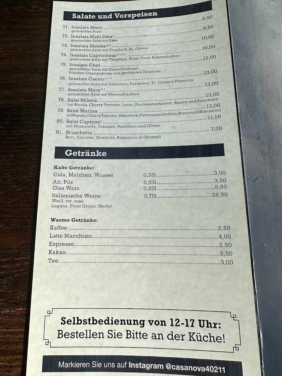 Pizzeria Casanova in Düsseldorf is a delightful haven for lovers of authentic Italian cuisine, blending the best of pizza, pasta, and fresh salads. This cozy spot on Am Wehrhahn 45 impresses with its warm ambiance and attentive service, making every visit feel special. Their wood-fired pizzas stand out, especially the quattro formaggio, rich with layered cheeses, and vibrant salami & veggie combinations, each with generous portions and exquisite presentation.